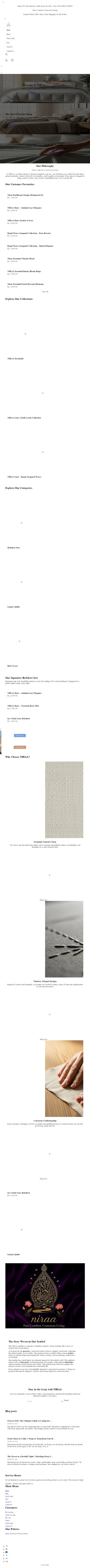 "Experience pure comfort with NIRAA's consciously crafted bed linens. Discover our collection of premium textiles designed for serene sleep. Pure Comfort, Conscious Living."